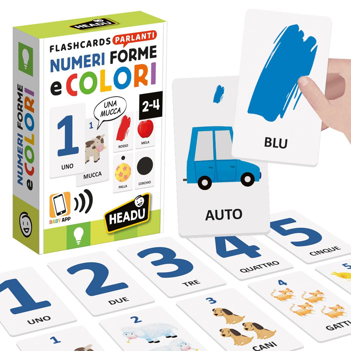 Τι χρώμα είναι το μήλο; Πόσες είναι οι γάτες; Μεγάλες διαδραστικές κάρτες με τις οποίες μπορείτε να κάνετε πολλές δραστηριότητες: να αναγνωρίζετε τα χρώματα, να διακρίνετε τα σχήματα και να μάθετε αριθμούς και ποσότητες. Επιπλέον, με την αποκλειστική εφαρμογή τα παιδιά ακούν την προφορά των λέξεων και ανακαλύπτουν πολλές ενδιαφέρουσες περιέργειες.