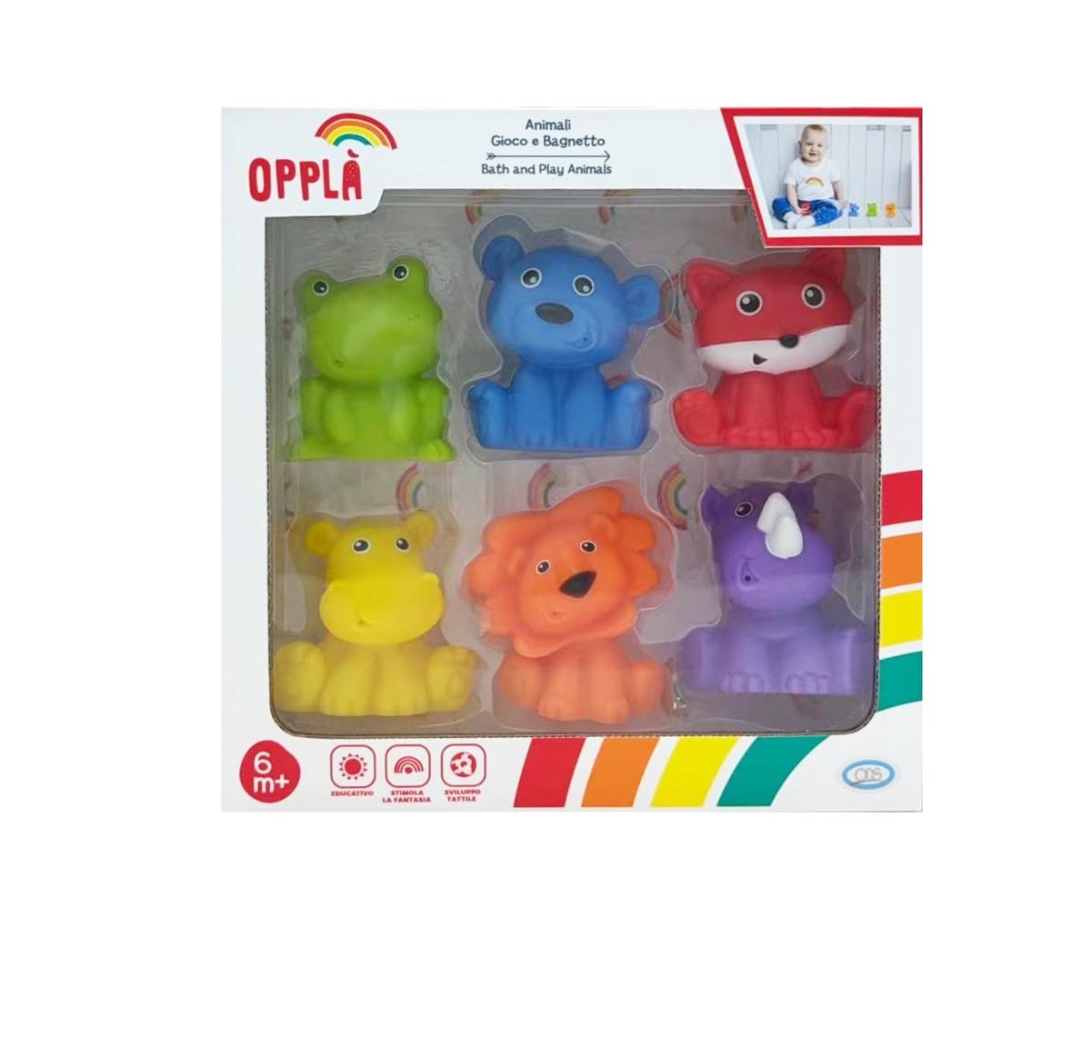 Oppla Bath Toys 6 Colorful Vinyl Animals 6.9 to 8 cm
