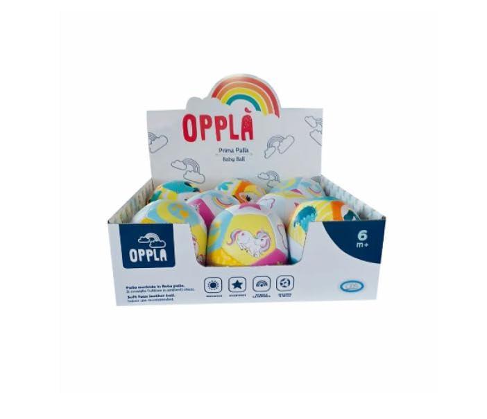 Oppl - Prima Palla 10 cm. Palla morbida con dettagli tattili, i vivaci disegni colorati stimolano la fantasia. In ecopelle, 10 cm di lato. Consigliato l'utilizzo al chiuso.