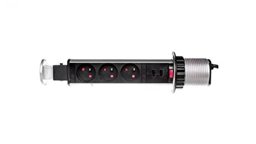 Orno Polska OR-AE-1349 Retractable Power Socket 3x250V AC USB Charger Silver 1.8m Cable