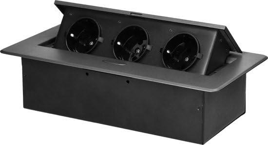 Orno Pop-Up Power Strip 3 Schuko Outlets Antracite Metal Horizontal Design