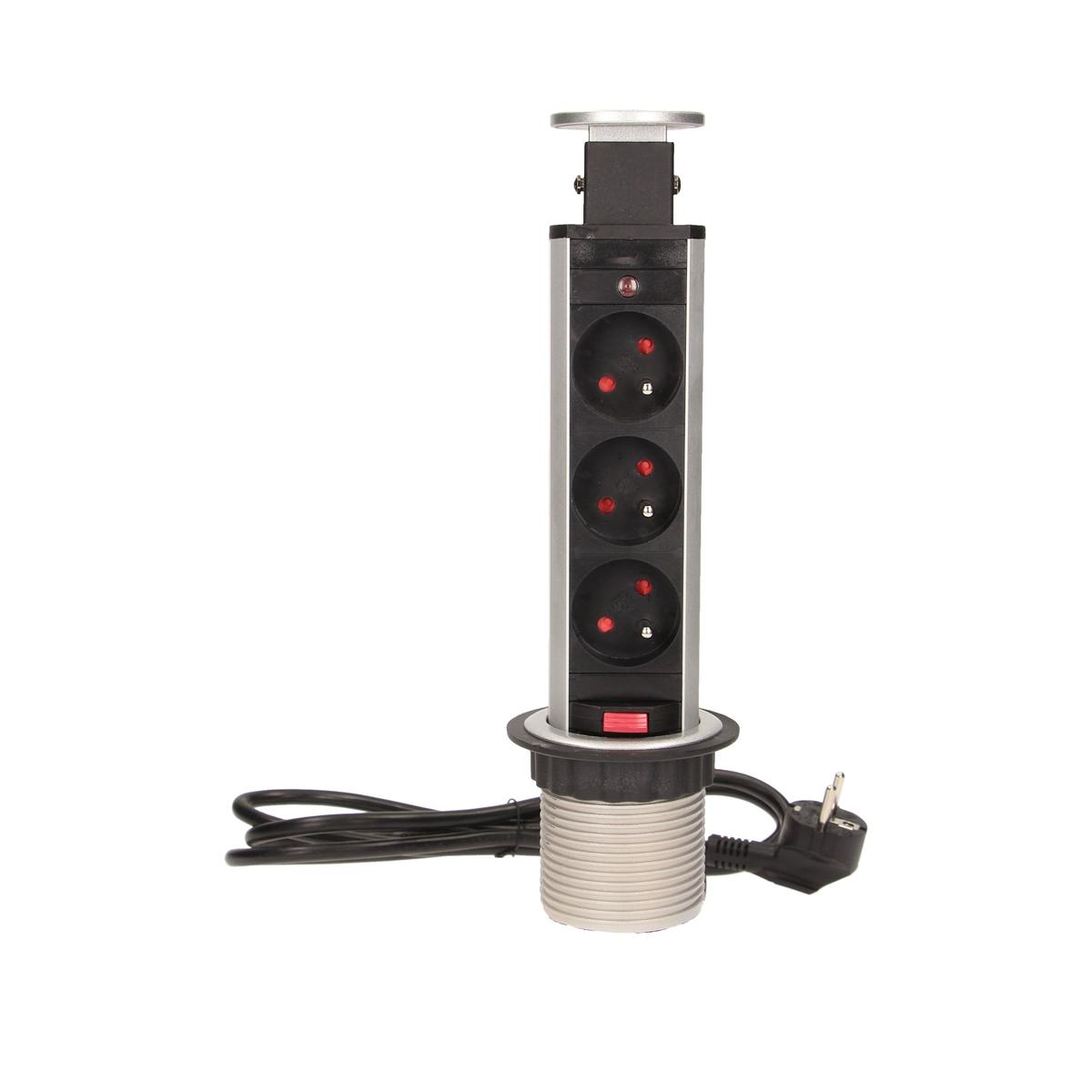 Orno Retractable Socket Table 3 x 250 V AC With Lock 1.8 m Cable Silver
