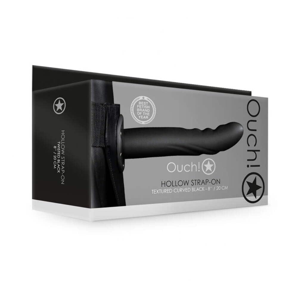 Ouch! Textured Curved Hollow Strap-On 8 x 20 cm Black