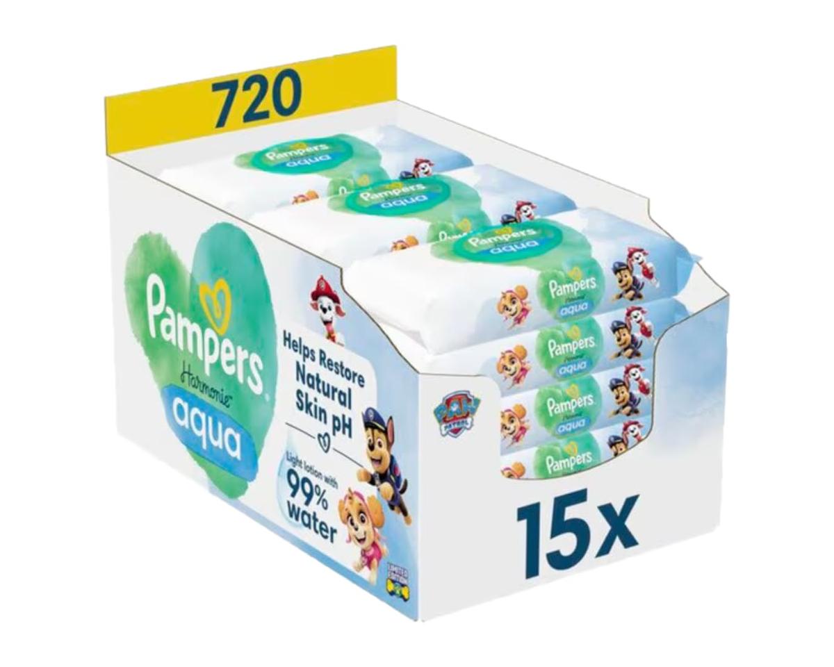 Pampers Harmonie Aqua Baby Wipes Paw Patrol Edition 15 Packs of 48 Wipes Total 720 Wipes