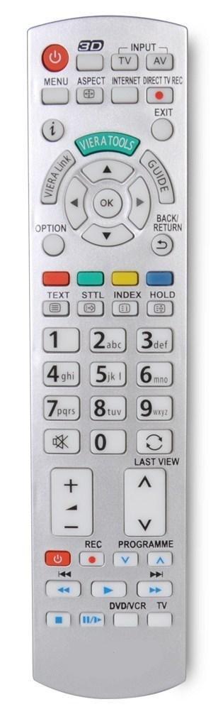 Καθολικό τηλεχειριστήριο για συσκευές RTV PANASONIC Το τηλεχειριστήριο μπορεί να ελέγχει ταυτόχρονα τις ακόλουθες συσκευές της εταιρείας PANASONIC: TV, DVD, VCR Προδιαγραφές: - Εμβέλεια λειτουργίας: 8m - Τροφοδοσία: 2 x μπαταρία AA - Συσκευασία: blister με γάντζο: 270x123mm Το τηλεχειριστήριο μπορεί να αντικαταστήσει τα ακόλουθα μοντέλα αρχικών τηλεχειριστηρίων PANASONIC: TNQE009TNQ10481TNQ2636EUR648053RMP9AB-42RM-03BEUR50708EUR641030AEUR50131 0EUR501380EUR511224EUR644661EUR762