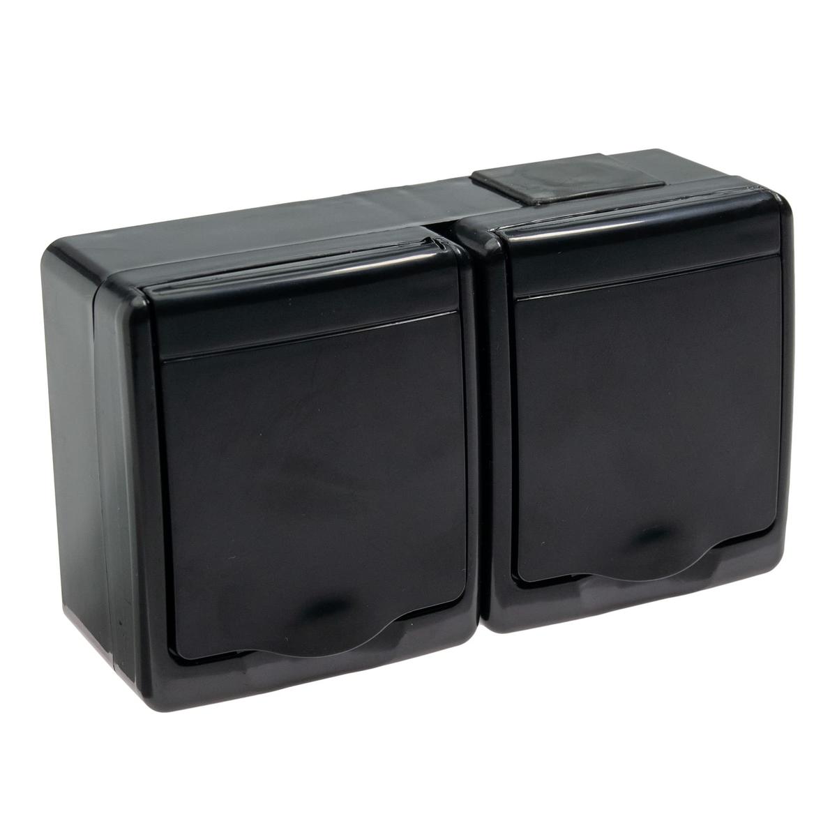 Surface-mounted socket outlet PAWBOL BETA, IP44, 2-way, with grounding, black