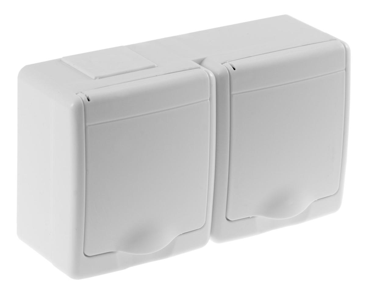 Surface-mounted 1-button switch + 1-way socket outlet PAWBOL BETA, IP44, grounding, white.