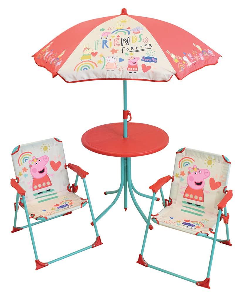 If you want to add a touch of originality to your home, you will do so with Garden furniture Peppa Pig Children's 4 Pieces.Gender: Children'sType: Garden furnitureIncludes: Chairs x 2 (53 x 38,5 x 37,5 cm)Sunshade (O 100 x 125 cm)Table (O 46 cm x 46 cm)Number of pieces: 4 PiecesApprox. diameter: O 46 cmRecommended use: Kids