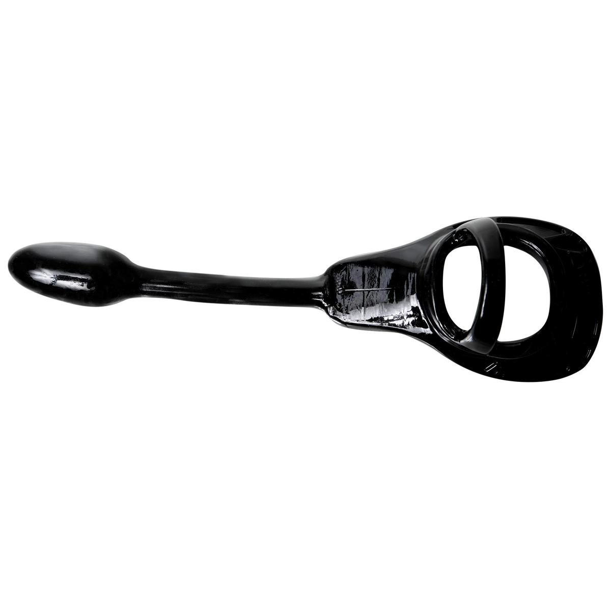 Perfect Fit Armour Tug Lock Small Cockring with Ball Strap and Butt Plug Black