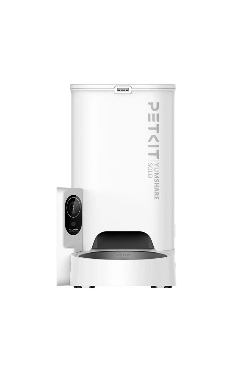 Έξυπνη Συσκευή Τροφής PetKit Yumshare SOLO Το PetKit Yumshare SOLO είναι μια ευφυή συσκευή τροφής κατοικίδιου εξοπλισμένη με κάμερα ευρείας γωνίας και δικατευθυντικό μικρόφωνο, που σας επιτρέπει όχι μόνο να παρατηρείτε το κατοικίδιό σας αλλά και να αλληλεπιδράτε και να το καταγράψετε. Επιπλέον, η κάμερα ανιχνεύει και αναλύει αυτόματα την ποσότητα του φαγητού που απομένει στο μπολ και βάσει των αποτελεσμάτων της ανάλυσης μπορεί να κρατήσει το επόμενο γεύμα