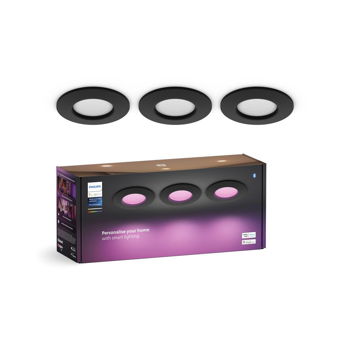 Philips Hue Slim Χωνευτά Σποτ 90 mm Μαύρο Πακέτο 3 Τεμαχίων