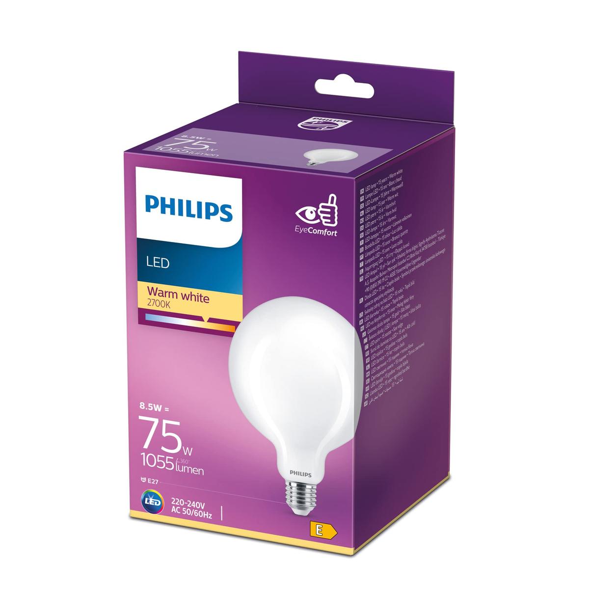 Philips LED Classic Globe Bulb 75W Equivalent G120 E27 Warm White Frosted