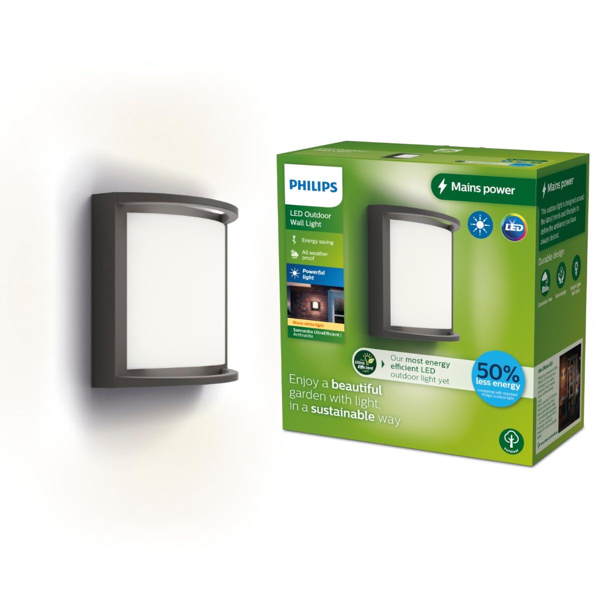 Philips LED Samondra Υπερ-Αποδοτικό Εξωτερικό Φωτιστικό Τοίχου 3.8W Θερμό Λευκό 2700K IP44 Ανθρακί