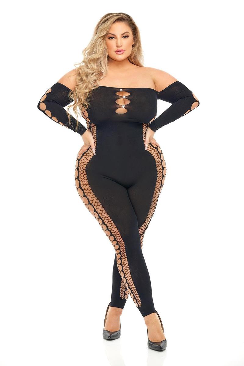 Pink Lipstick Bodystocking Black Size L Nylon Spandex Blend