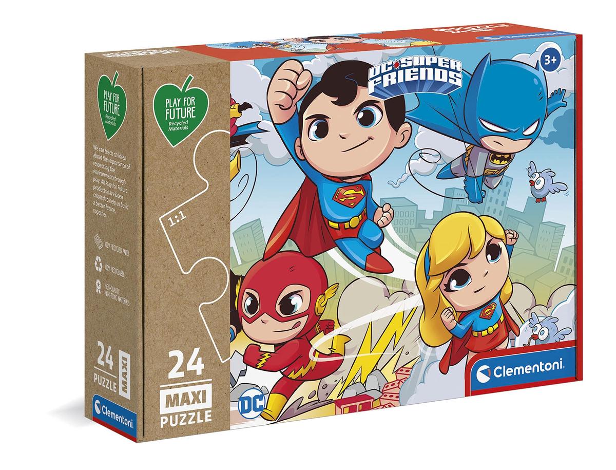 Unisciti ai supereroi DC con questo puzzle Maxi da 24 pezzi della serie Play for Future. Perfetto per i piccoli fan di Superman, Batman e Wonder Woman, questo puzzle presenta una scena epica con i supereroi in azione. Realizzato con materiali ecologici di alta qualit, garantisce resistenza e durata. I pezzi grandi sono facili da maneggiare e si incastrano perfettamente, creando un'immagine dettagliata e coinvolgente. Un'attivit ideale per sviluppare la coordinazione e la creativit nei bambini.