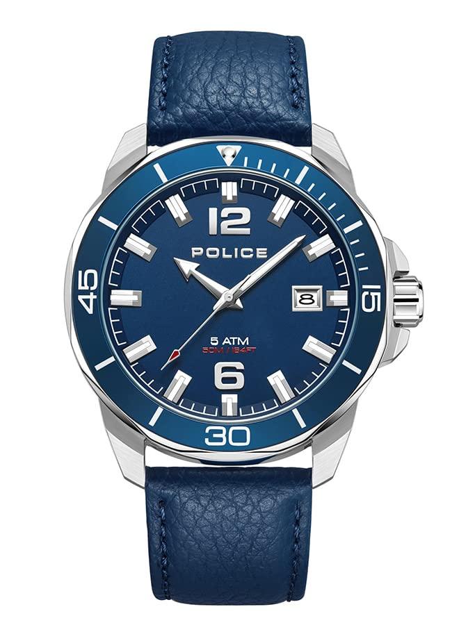 Police Thornton PEWJB2228101 Quartz Watch 43 mm Silver Dial Blue Leather Band