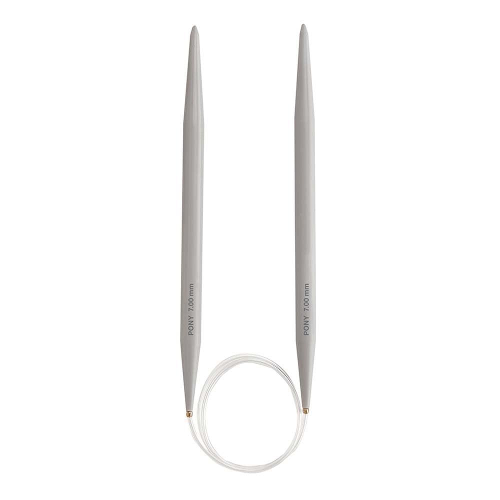 Κυκλικές βελόνες πλεξίματος από συμπαγές πλαστικό με ειδική επιφανειακή κατεργασία, συνδεδεμένες με διαφανές πλαστικό κορδόνι. Οι βελόνες είναι ελαφρές χάρη στο υλικό που χρησιμοποιείται. Είναι επίσης κατάλληλες για ταξίδια.