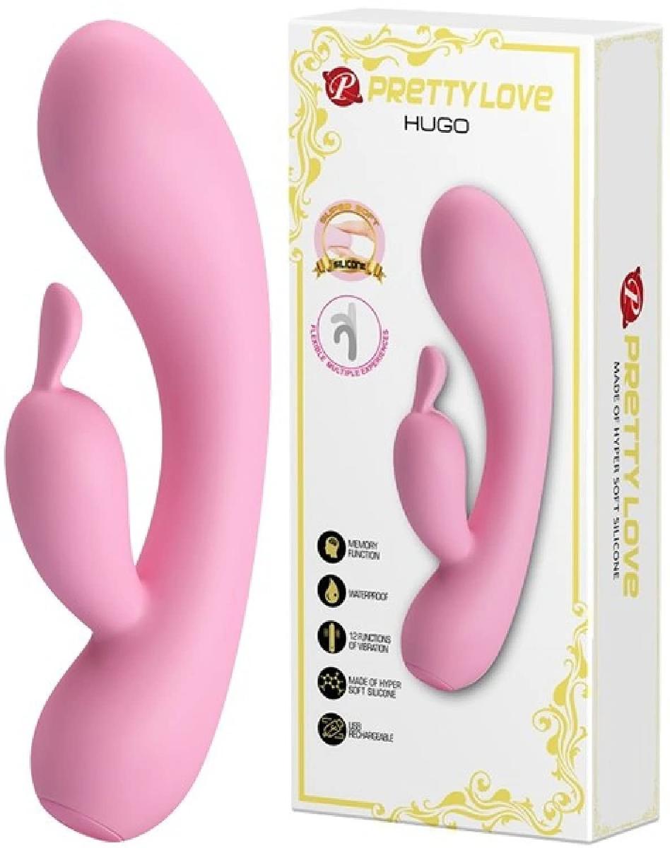 Pretty Love Hugo Rabbit Vibrator 12 Function Vibrations Pink Liquid Silicone