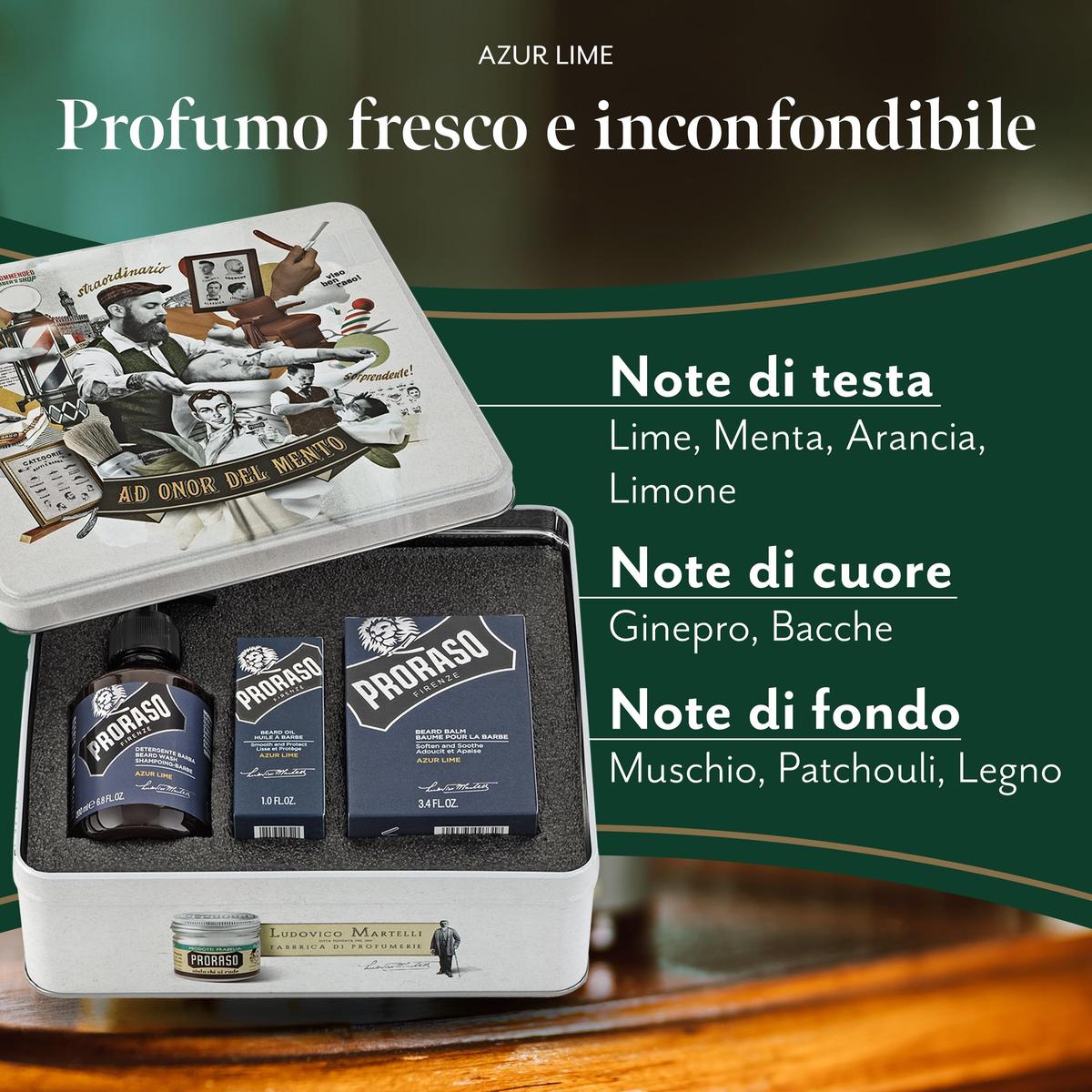 Proraso Azur Lime Σετ Περιποίησης Γενειάδας 200 ml Σαμπουάν + 100 ml Βάλσαμο + 30 ml Λάδι Κουτί Δώρου Ανδρών