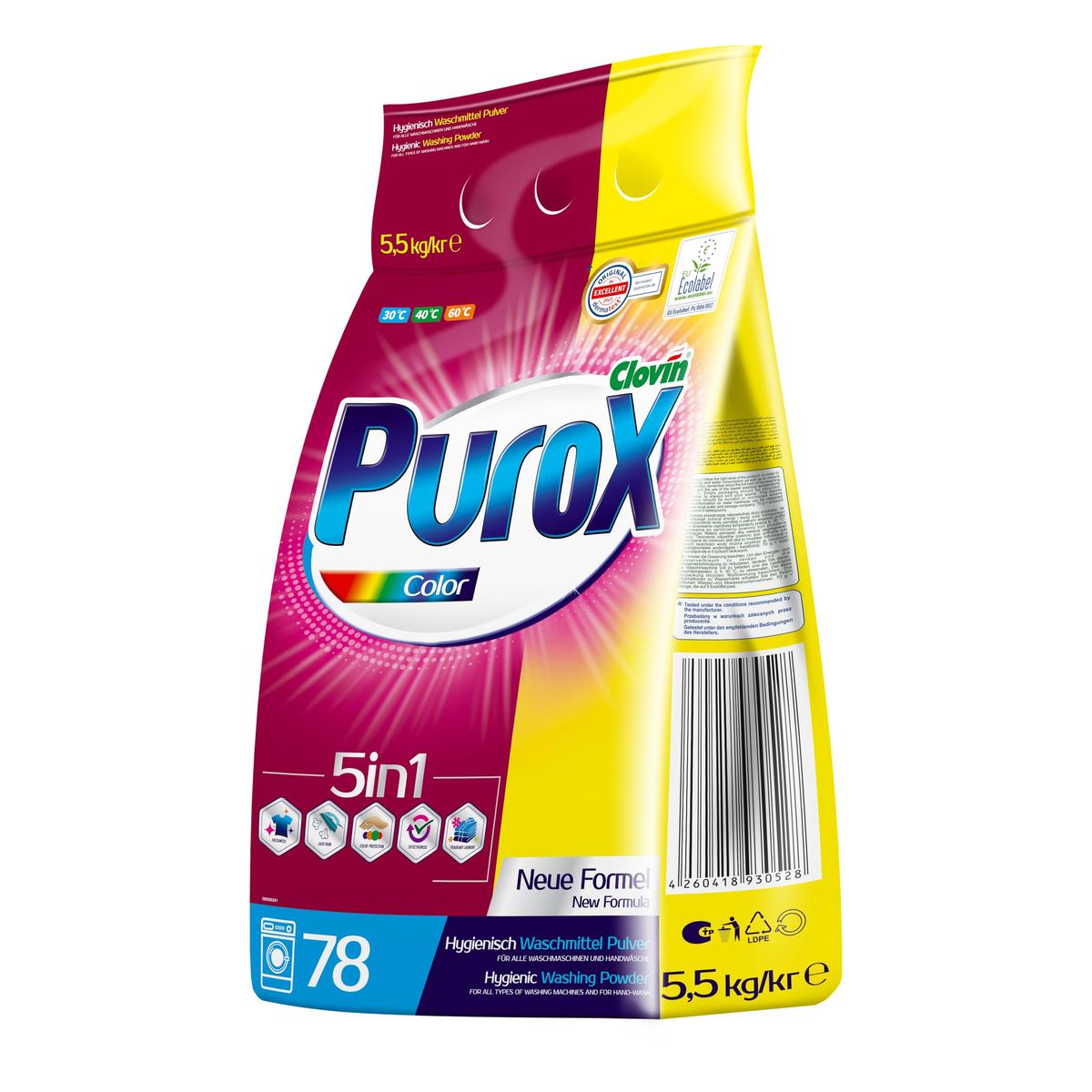 Purox Color - Proszek do prania kolorowych ubra, 78 pra - 5,5 kg