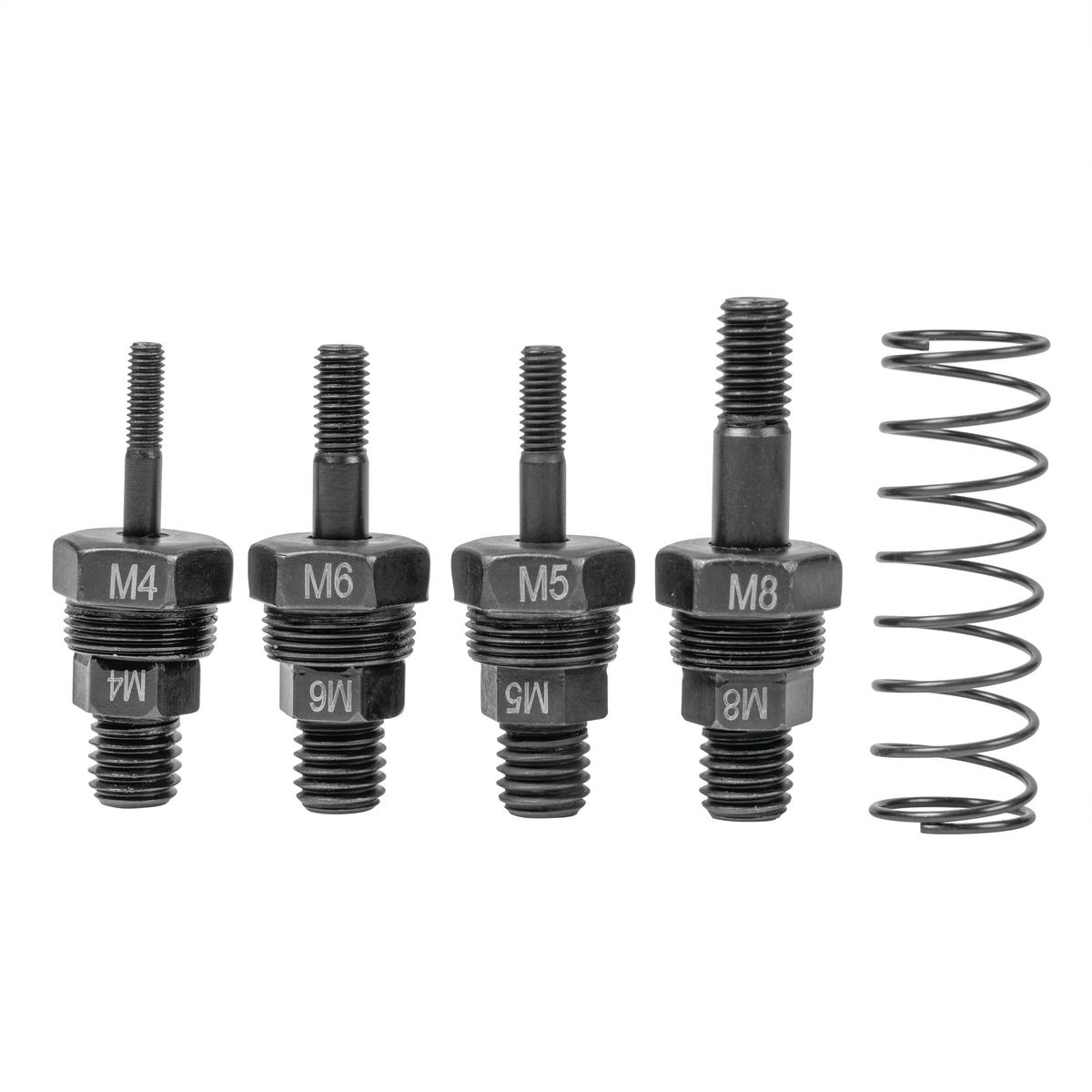 Complete maintenance kit with everything you need to be able to repair Rapid RP160 Rivet nut adapter. The kit contains mandrels and nose pieces in sizes M4, M5, M6, M8 and a spring.