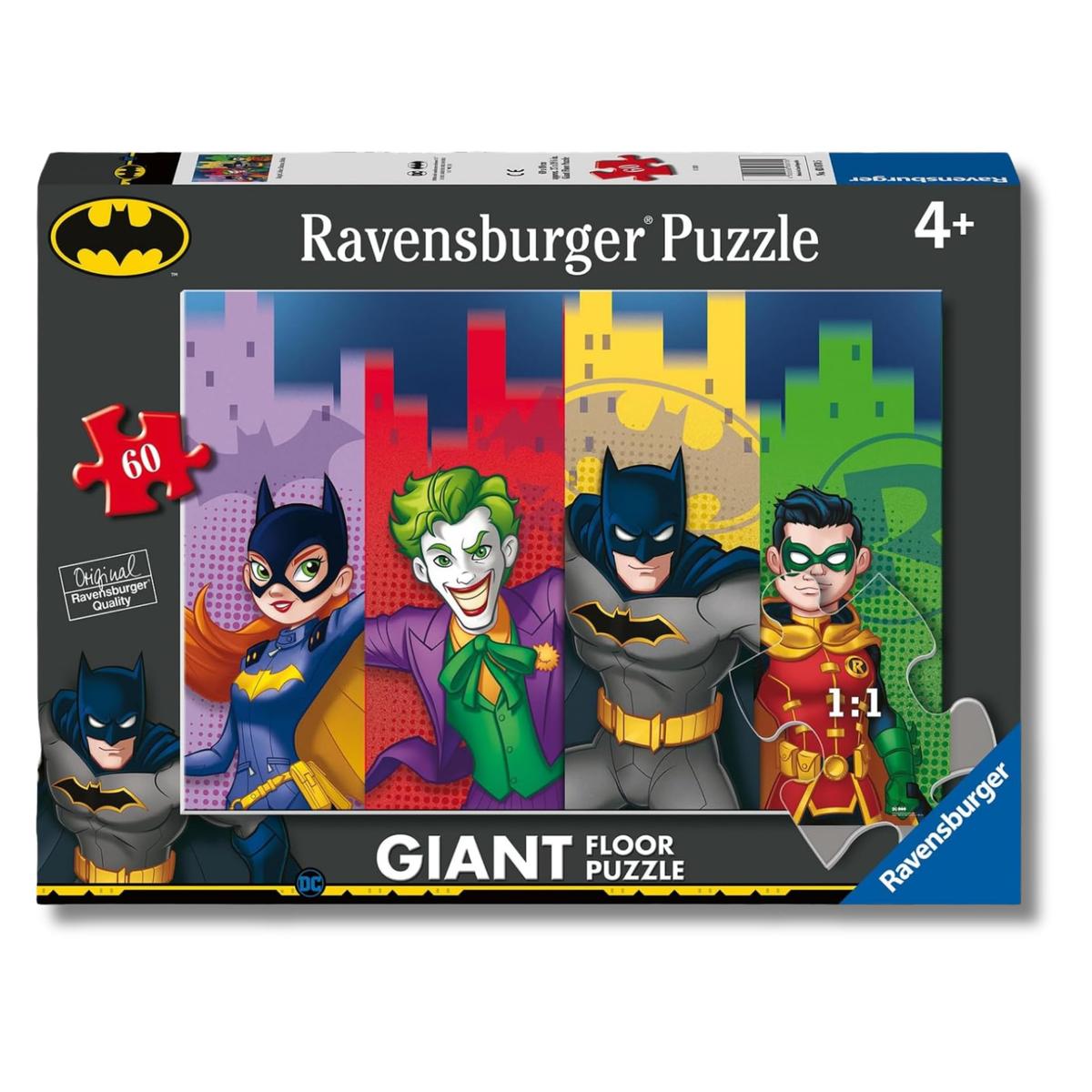 Ενωθείτε με τον Σκοτεινό Ιππότη με αυτό το γιγαντιαίο puzzle δαπέδου 60 κομματιών. Απεικονίζει τον Batman σε μια από τις κλασικές του ηρωϊκές στάσεις, έτοιμο να προστατεύσει τη Gotham City. Με τα μεγάλα του κομμάτια, τέλειο για παιδιά που αγαπούν τους υπερήρωες και θέλουν να αμφισβητήσουν τις ικανότητές τους στο puzzle. Μια διασκεδαστική και διεγερτική δραστηριότητα που θα τα κρατήσει απασχολημένα για ώρες.