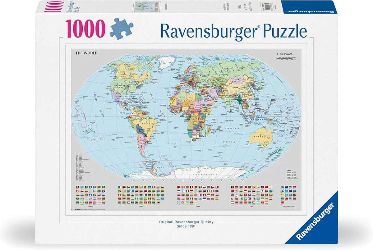 Scopri il mondo con il Puzzle da 1000 Pezzi - Mappamondo Politico di Ravensburger. Questo puzzle presenta una dettagliata mappa politica del mondo, con colori vivaci che distinguono i vari paesi e confini. Realizzato con materiali di alta qualit, perfetto per gli appassionati di geografia e puzzle di tutte le et, offrendo una sfida gratificante. Ideale per sviluppare la concentrazione e le abilit motorie fini, questo puzzle un'aggiunta perfetta alla collezione di qualsiasi amante della geografia e del mondo.