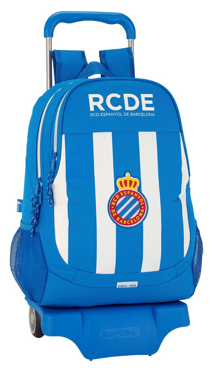 Children deserve the best, that's why we present to you School Rucksack with Wheels 905 RCD Espanyol, ideal for those who seek quality products for their little ones! Get RCD Espanyol and other brands and licences at the best prices!Material: SteelPolyester 600DDesign: SportingType: School Rucksack with WheelsColour: BlueWhiteCharacteristics: Padded shoulder strapsErgonomic paddingRemovable TrolleyUpper handleAdjustment systemRecommended age: 5-14 YearsHeight: 85 cmType of fastening: ZipCompartments: 2 CompartmentsWater bottle side pocket x 2Approx. dimensions: 32 x 44 x 16 cm
