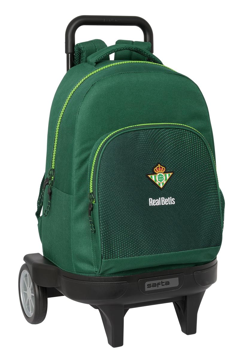 Return to the office without forgetting a single thing! Buy School Rucksack with Wheels Real Betis Balompi'e Green 33 x 45 x 22 cm and be the envy of your colleagues!Colour: GreenCharacteristics: RemovableReinforcedWater repellantErgonomic paddingPersonal identification cardDesign: SportingHeight: 93 cmMaterial: Polyester 600DType of fastening: ZipCompartments: Front pocketMain compartmentWater bottle side pocketApprox. dimensions: 33 x 45 x 22 cm