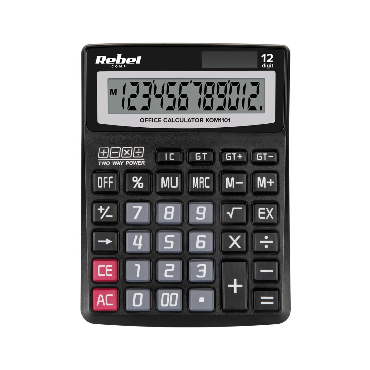 Rebel OC-100 Office Calculator 12-Digit Display Solar Panel and Battery 138 x 190 x 35 mm