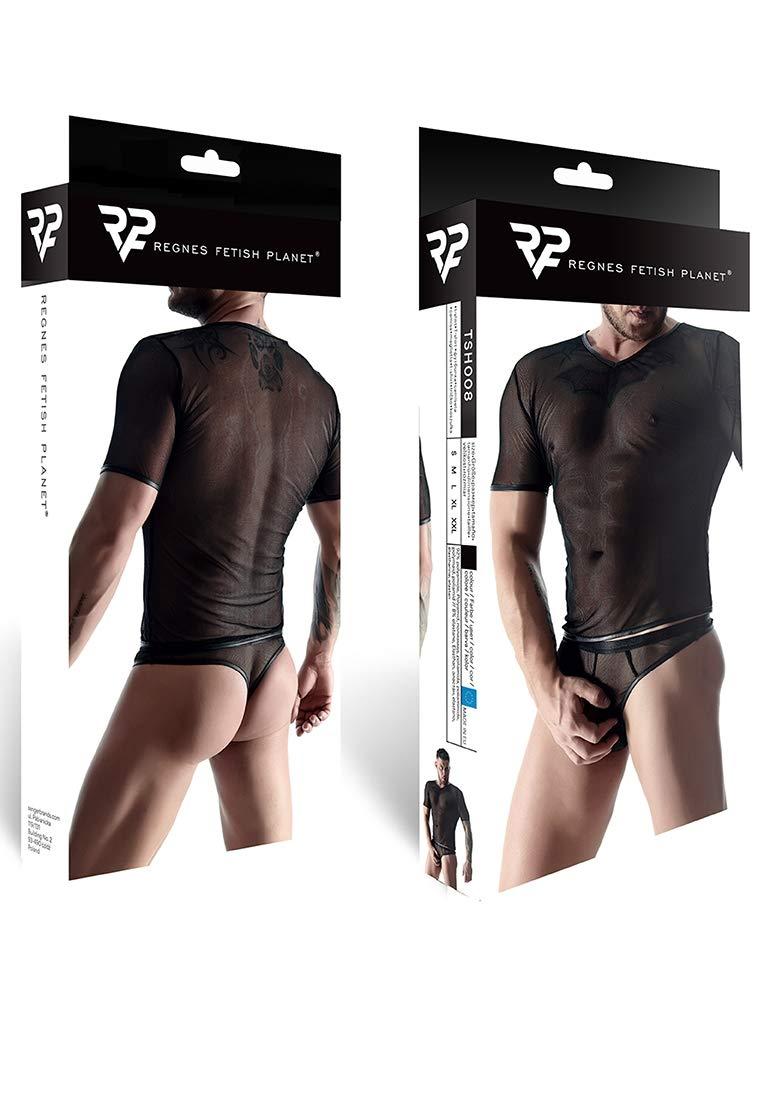 Regnes Fetish Planet Men's T-Shirt Stretch Mesh V-Neck Size S Black