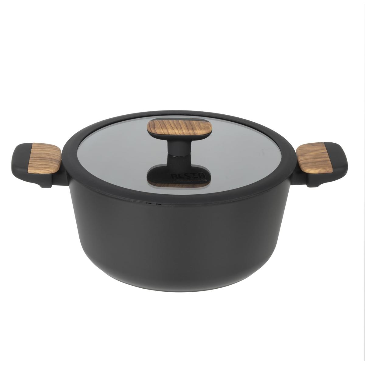 Resto 93188 Κατσαρόλα 24 cm 4.4 L Μαύρη με Γυάλινο Καπάκι
