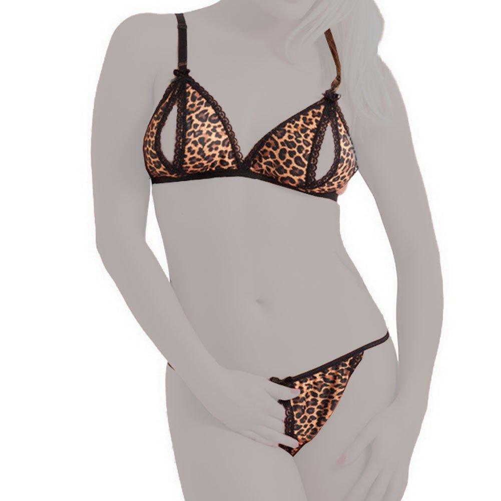 Rimba Amorable Open Bra and Briefs Set Leopard Print One Size