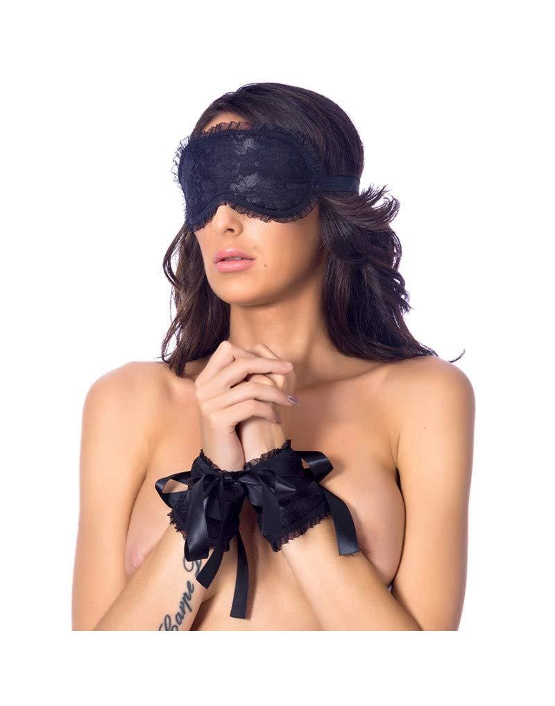 Rimba Bondage Play Handcuffs and Burlesque Style Mask Black