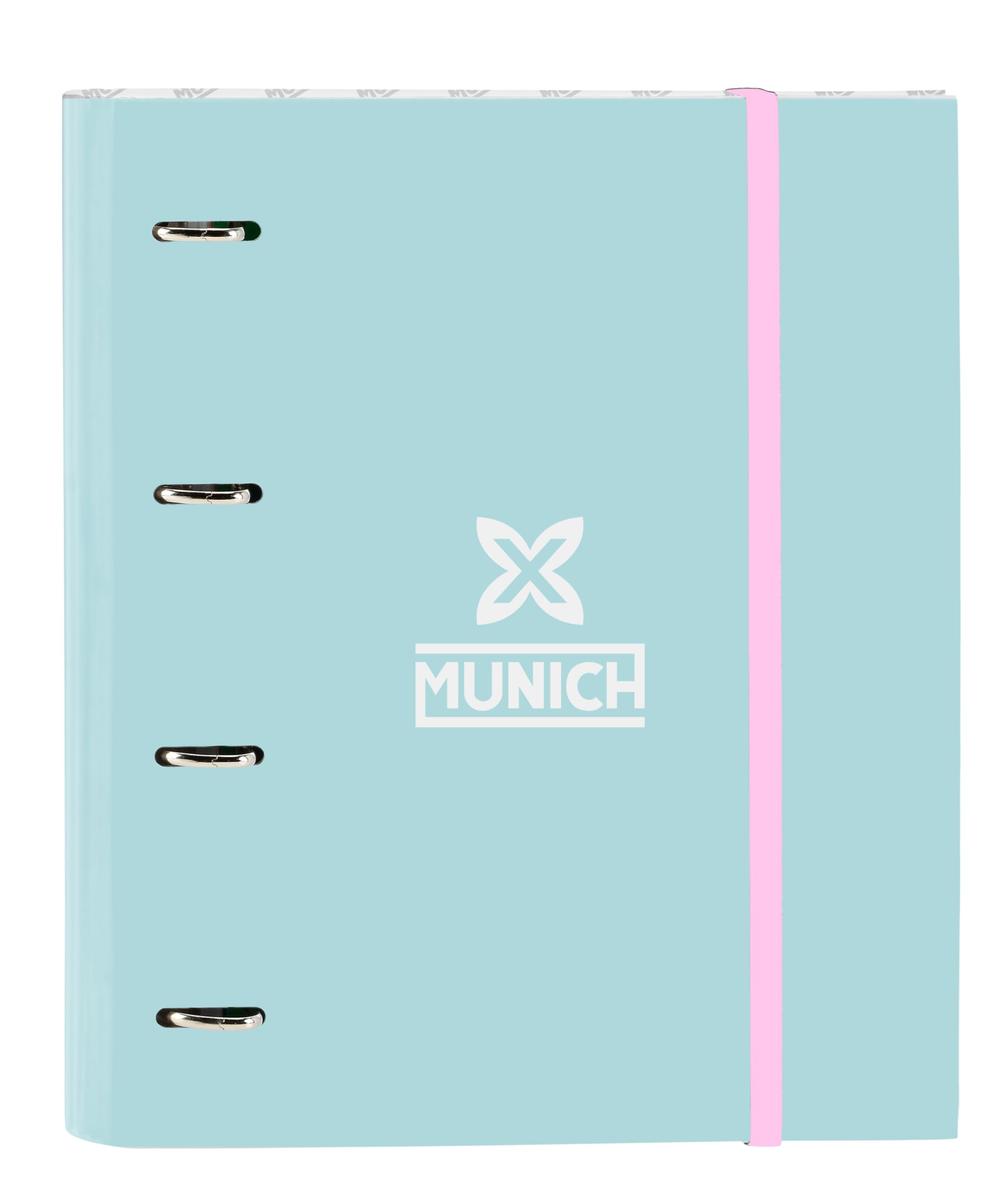 Return to the office without forgetting a single thing! Buy Ring binder Munich Heaven Sky blue 27 x 32 x 3.5 cm and be the envy of your colleagues!Type: Ring binderSchoolRings: 4 Rings (35 mm)Compartments: Interior OrganiserIncludes: Replacement (100 Sheets)Weight: 80 g/m^2Type of fastening: ElasticCharacteristics: Hard coverGrid sheetsMaterial: Polyester 600DColour: Sky blueSquared: 5 mmApprox. dimensions: 27 x 32 x 3.5 cm