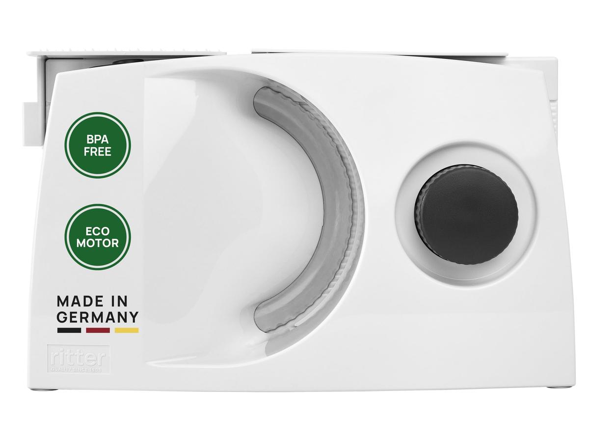 Kunststoffausfhrung Wellenschliffmesser, 17 cm Schnittstrkeeinstellung bis ca. 16 mm Sicherheits-Moment- und Dauerschalter Elektronische Regelung der Messerdrehzah