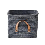 Rice Small Square Raffia Basket Leather H...
