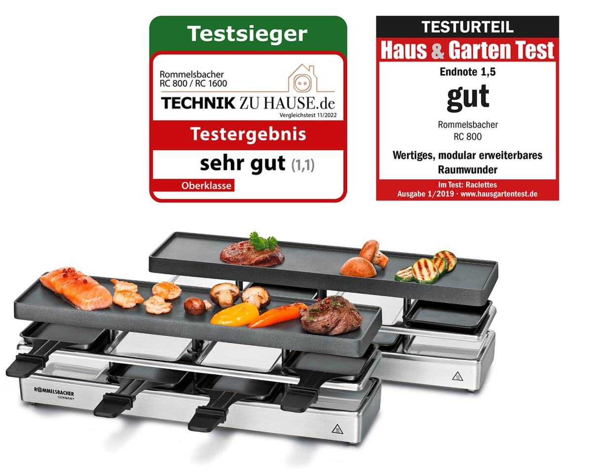 Rommelsbacher RC 1600 Fun for 4 Plus 4 Raclette Grill 8 Μη Κολλώδια Τηγάνια Ασημί