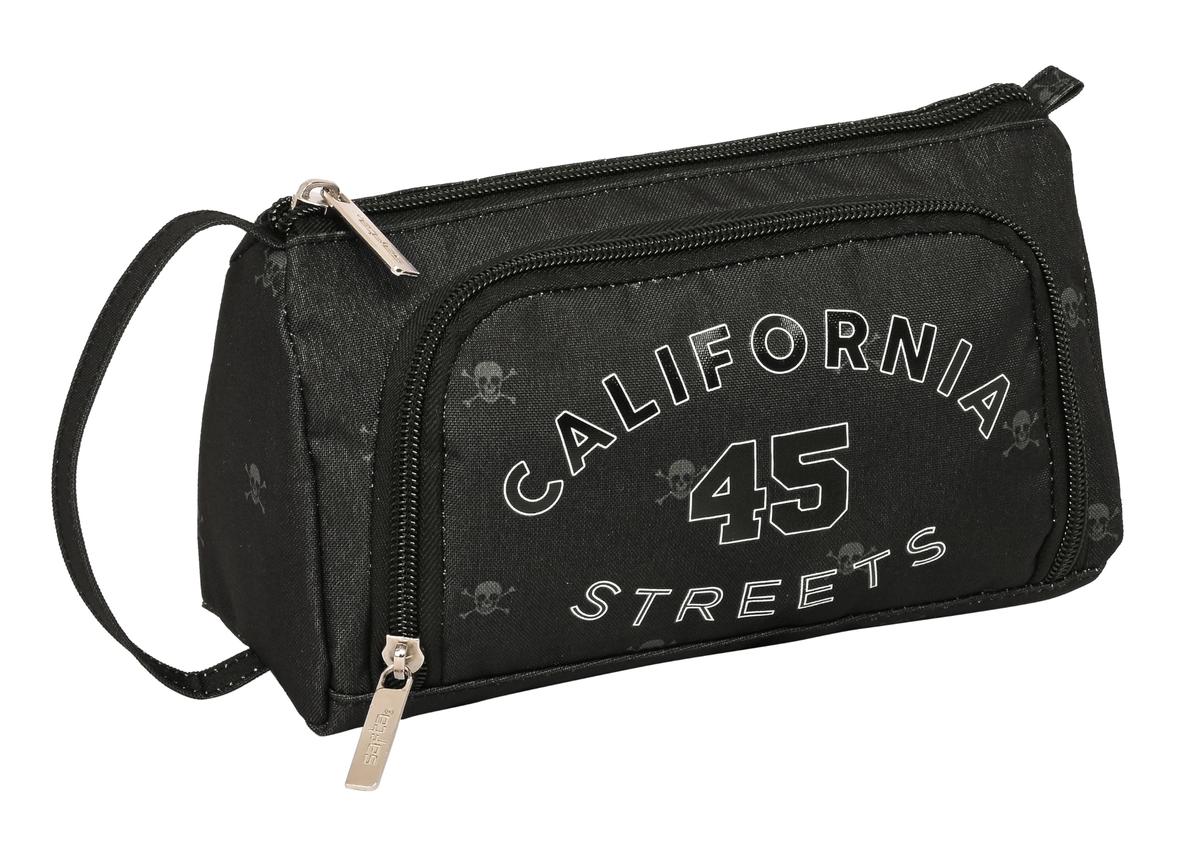 Return to the office without forgetting a single thing! Buy School Case with Accessories Safta California Black 20 x 11 x 8.5 cm (32 Pieces) and be the envy of your colleagues!Type: School CaseSchoolCompartments: 1 CompartmentInterior OrganiserIncludes: PencilPencil SharpenerEraserPen x 3Fluorescent MarkerScissorsFelt-tip pens x 12 + Colouring pencils x 12Inner pocketsType of fastening: ZipMaterial: Polyester 600DNumber of pieces: 32 PiecesCharacteristics: Front zip placketColour: BlackCarrying handle: SideApprox. dimensions: 20 x 11 x 8.5 cm