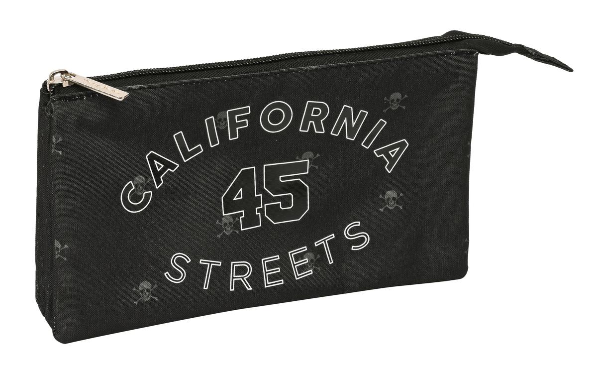 Return to the office without forgetting a single thing! Buy Triple Carry-all Safta California Black 22 x 12 x 3 cm and be the envy of your colleagues!Type: School CaseTriple Carry-allSchoolType of fastening: ZipGender: Children'sColour: BlackMaterial: Polyester 600DIncludes: Interior pocketCompartments: 3 CompartmentsApprox. dimensions: 22 x 12 x 3 cm