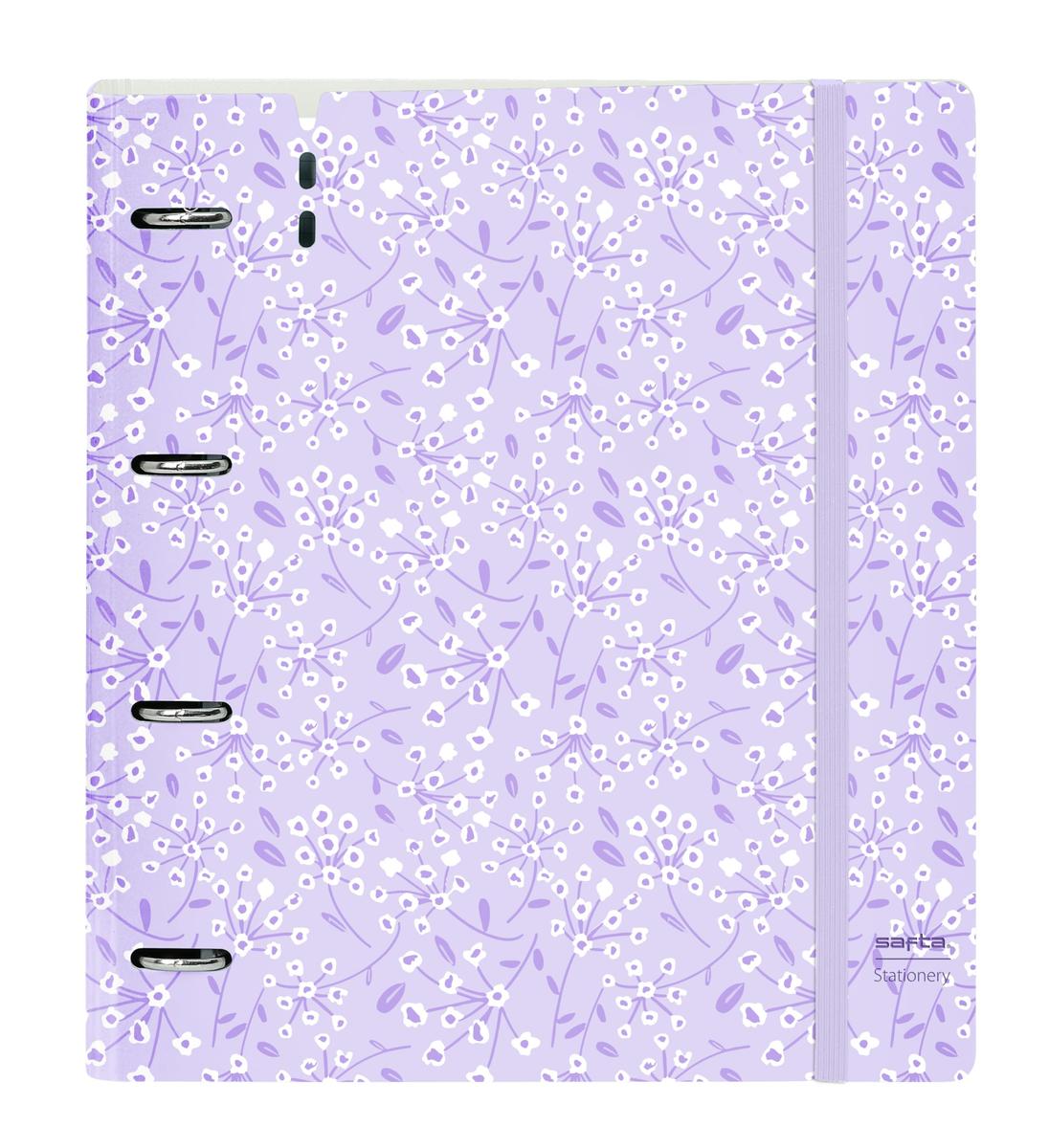 Return to the office without forgetting a single thing! Buy Ring binder Safta Light purple flowers Purple 27 X 32 X 4 cm and be the envy of your colleagues!Type: Ring binderColour: PurpleRings: 4 Rings (35 mm)Compartments: Interior OrganiserIncludes: Replacement (100 Sheets)Type of fastening: ElasticGender: YoungCharacteristics: Grid sheetsMaterial: PlasticSquared: 5 mmApprox. dimensions: 27 X 32 X 4 cm