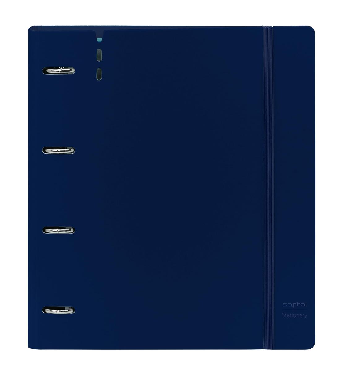 Return to the office without forgetting a single thing! Buy Ring binder Safta Dark blue Dark blue and be the envy of your colleagues!Type: Ring binderColour: Dark blueRings: 4 Rings (35 mm)Compartments: Interior OrganiserIncludes: Replacement (100 Sheets)Type of fastening: ElasticGender: YoungCharacteristics: Grid sheetsMaterial: PlasticSquared: 5 mmApprox. dimensions: 27 X 32 X 4 cm
