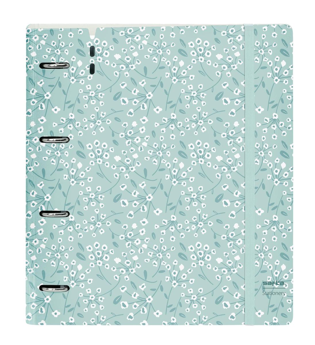 Return to the office without forgetting a single thing! Buy Ring binder Safta Light blue flowers and be the envy of your colleagues!Type: Ring binderMaterial: PlasticCharacteristics: Grid sheetsGender: YoungType of fastening: ElasticIncludes: Replacement (100 Sheets)Compartments: Interior OrganiserRings: 4 Rings (35 mm)Squared: 5 mmApprox. dimensions: 27 X 32 X 4 cm