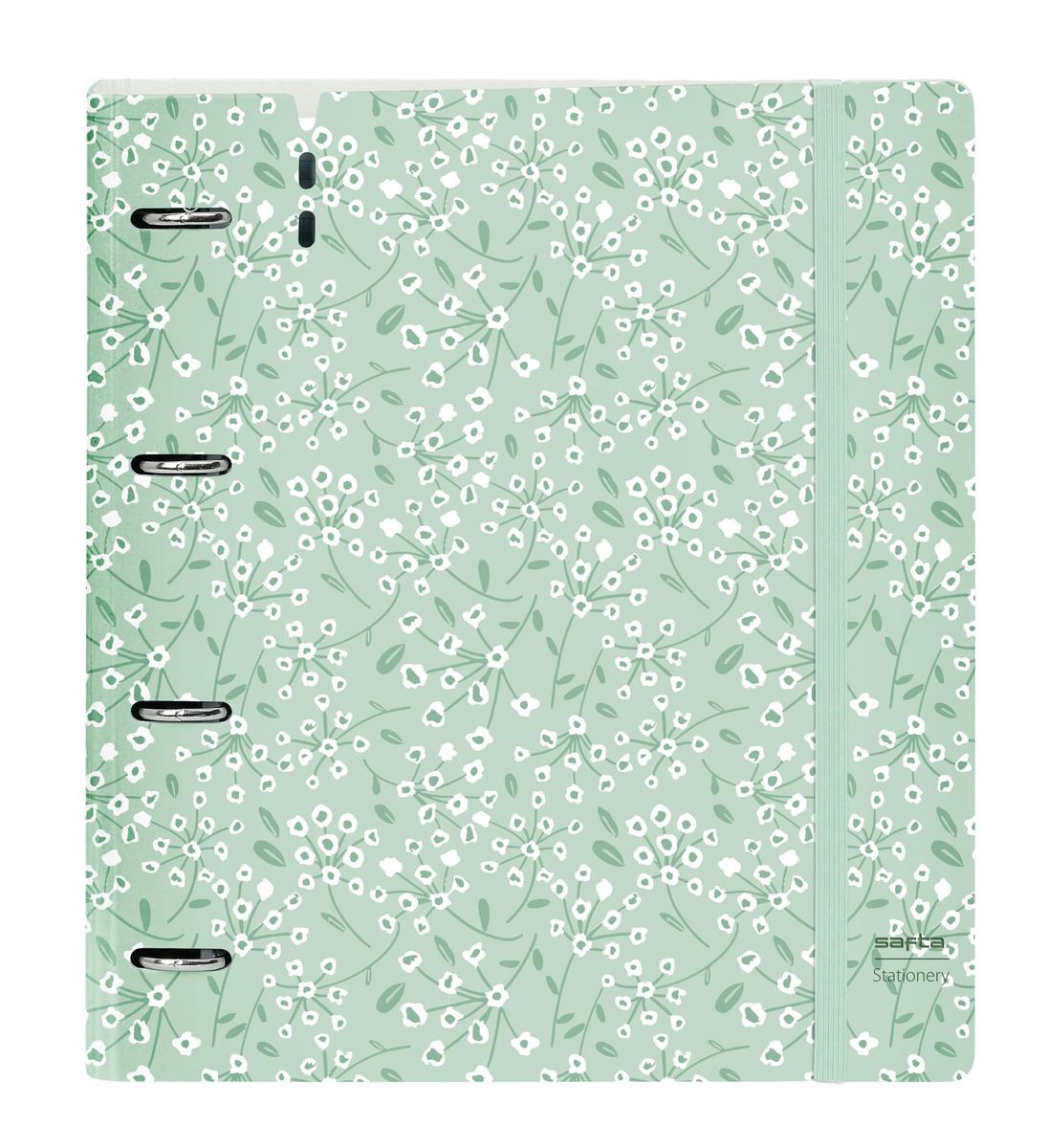 Return to the office without forgetting a single thing! Buy Ring binder Safta Light green flowers and be the envy of your colleagues!Type: Ring binderMaterial: PlasticCharacteristics: Grid sheetsGender: YoungType of fastening: ElasticIncludes: Replacement (100 Sheets)Compartments: Interior OrganiserRings: 4 Rings (35 mm)Squared: 5 mmApprox. dimensions: 27 X 32 X 4 cm