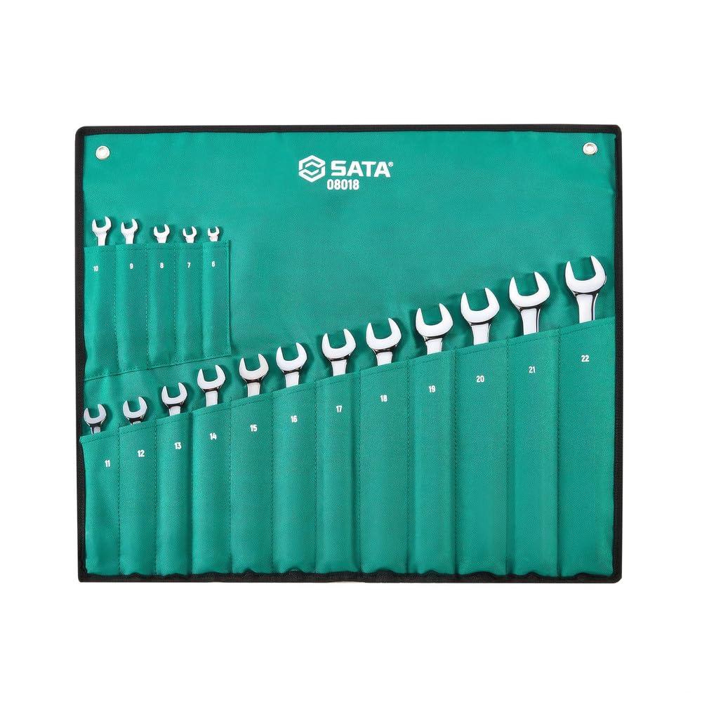 SATA Combination Wrench Set 17 Pieces Metric (6 to 22 mm) Full Polish