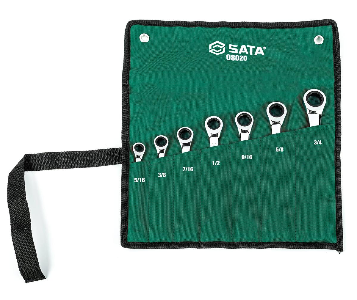 SATA S08020 7 Piece SAE Double Ratcheting Wrench Set