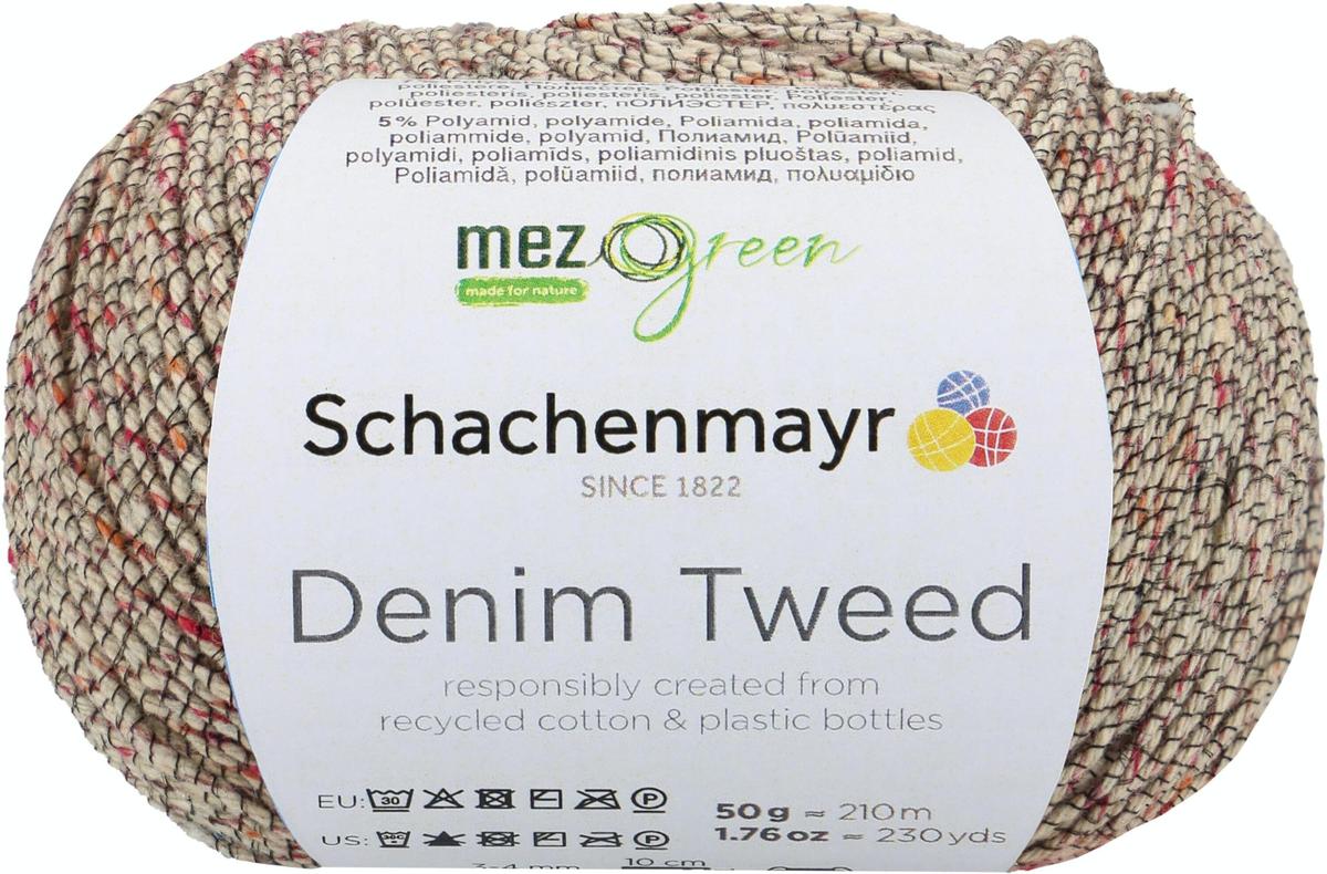 Το Denim Tweed είναι ένα βιώσιμο νήμα καθώς είναι κατασκευασμένο κυρίως από ανακυκλωμένα υλικά. Το ποσοστό βαμβακιού προέρχεται από υφαντουργικά απόβλητα από την παραγωγή denim, ενώ το πολυεστέρα προέρχεται από ανακυκλωμένα μπουκάλια PET. Αυτό το μίγμα δημιουργεί ένα νήμα που περιέχει μικρούς κόμβους χρωματιστών ινών, όπως αυτούς που γνωρίζουμε από κλασικά ύφη tweed. Για να παρέχει την απαραίτητη σταθερότητα και εμφάνιση, το νήμα