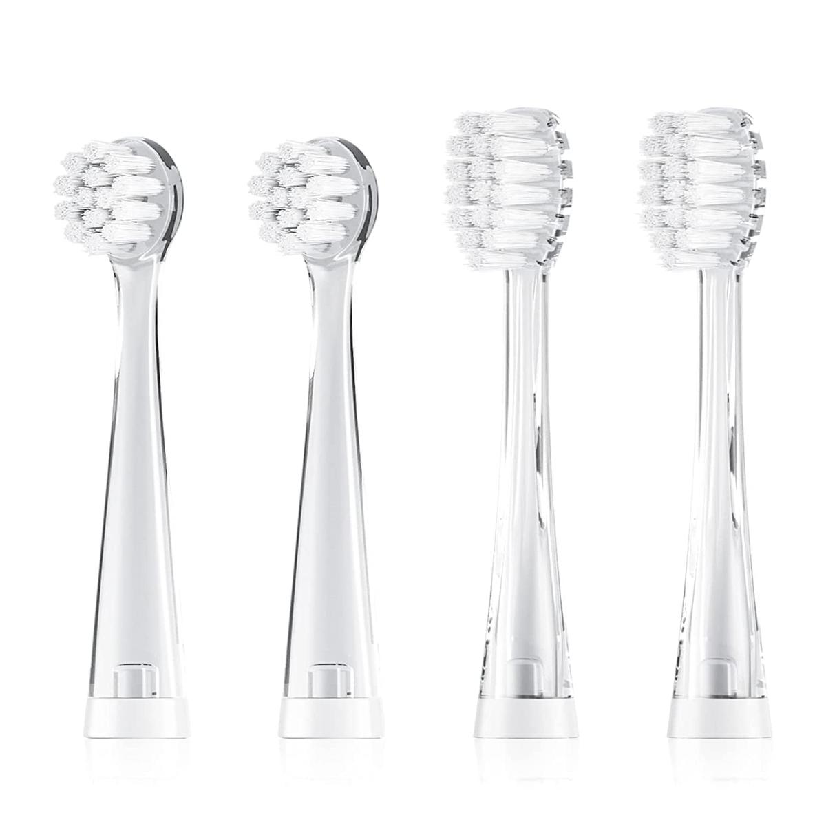 Ανταλλακτικές κεφαλές για οδοντόβουρτσες SEAGO SG-513 και SG-977. Οι μικρότερες προορίζονται για παιδιά έως 18 μηνών, ενώ οι μεγαλύτερες για παιδιά από 18 έως 36 μηνών. Περιέχει 4 κεφαλές, κατασκευασμένες από ασφαλείς μαλακές ίνες Dupont.