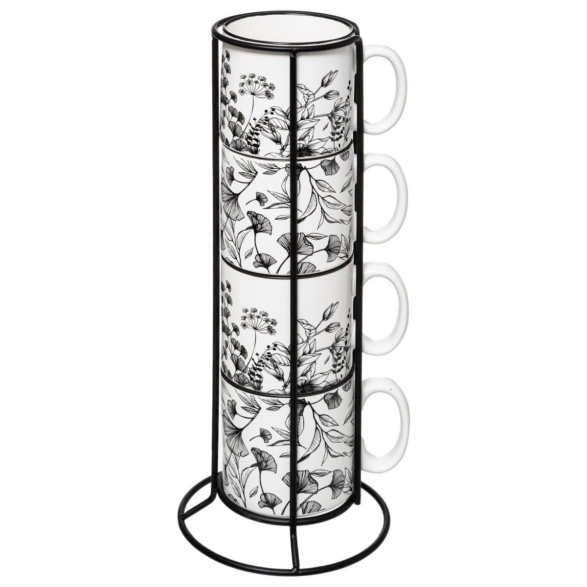 Secret de Gourmet Σετ Κεραμικές Κούπες Floral 240 ml 4 Τμχ σε Ράφι Λευκό