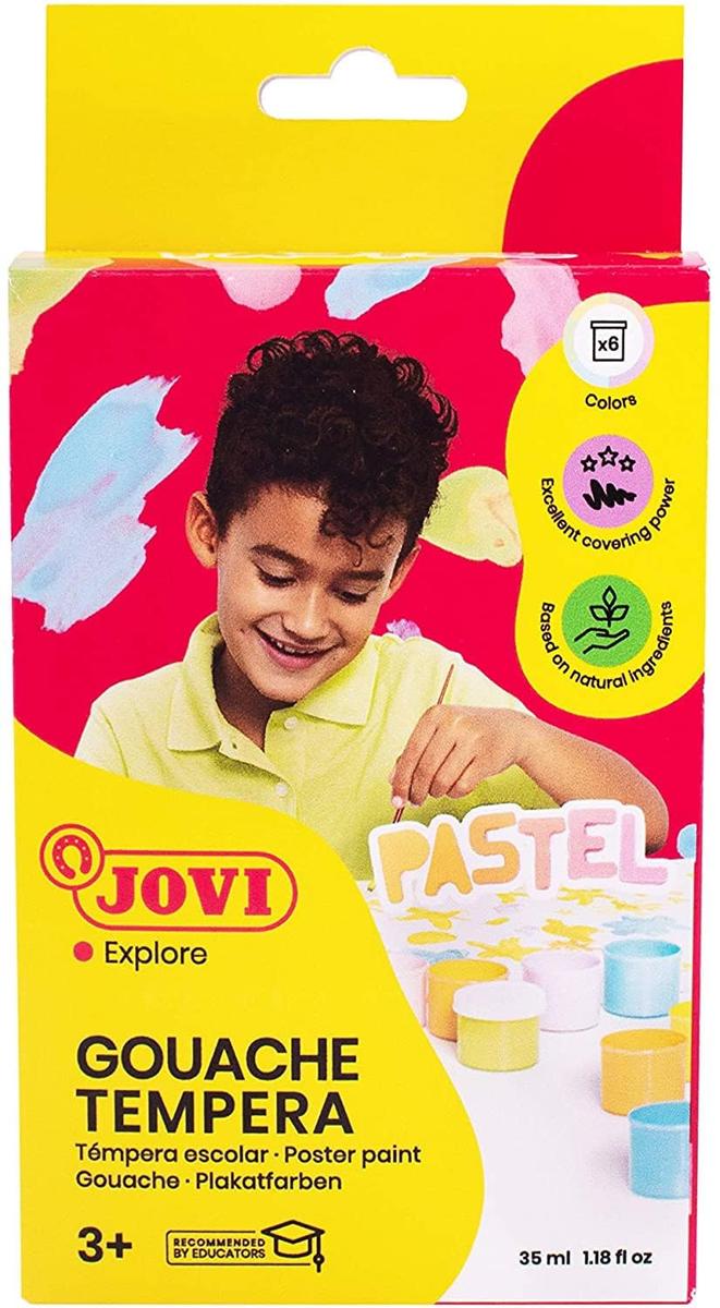 Jovi Tempera Paint Set 6 x 35 ml Pastel Colors Includes Brush